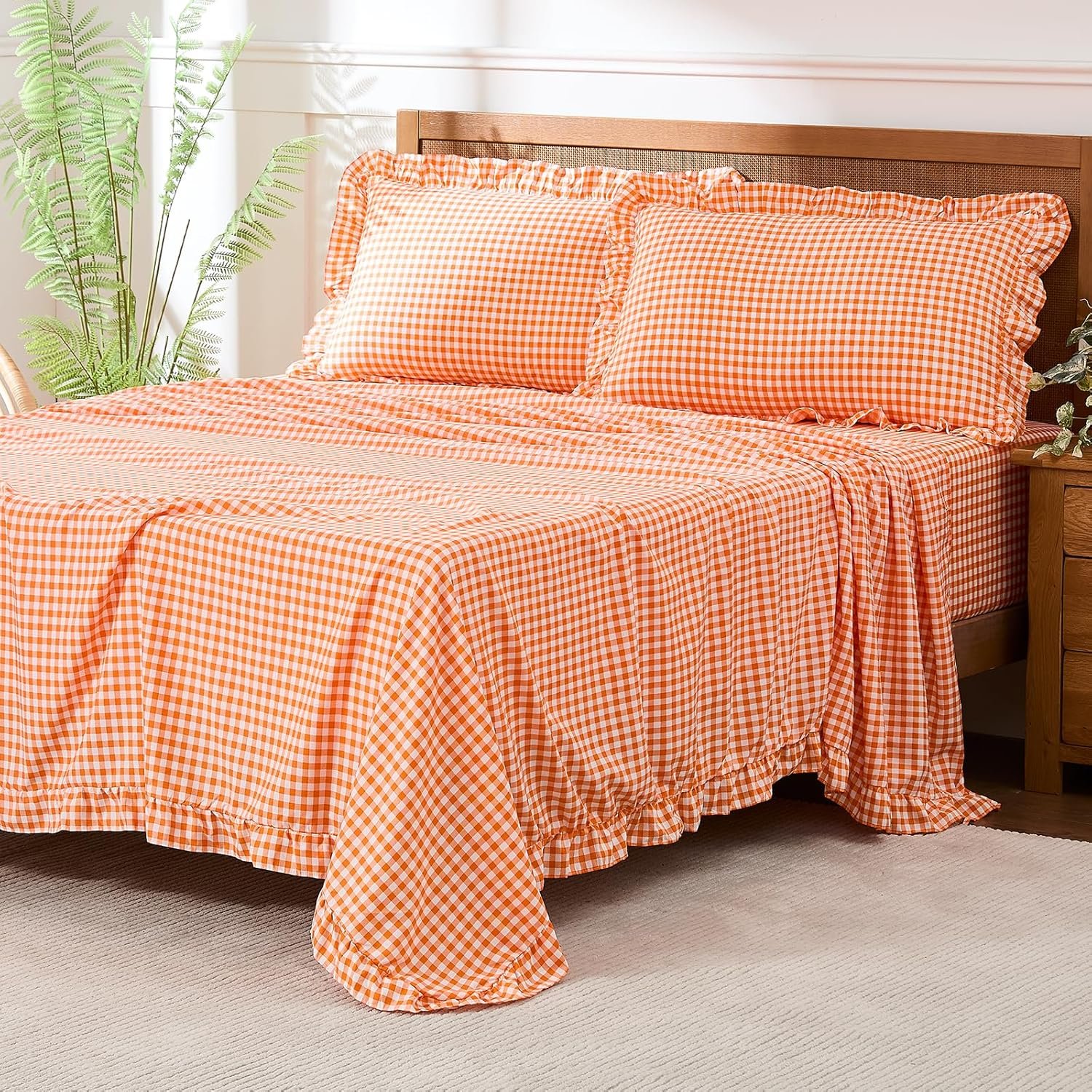 - Effortless Maintenance and Wrinkle-Resistant: These sheets are machine – washable and designed to resist wrinkles, stains, and fading. Wash after wash, the vibrant gingham pattern and ruffled details remain intact, eliminating the need for ironing. Spend less time on maintenance and more time enjoying the crisp, freshly – made look of your bedding