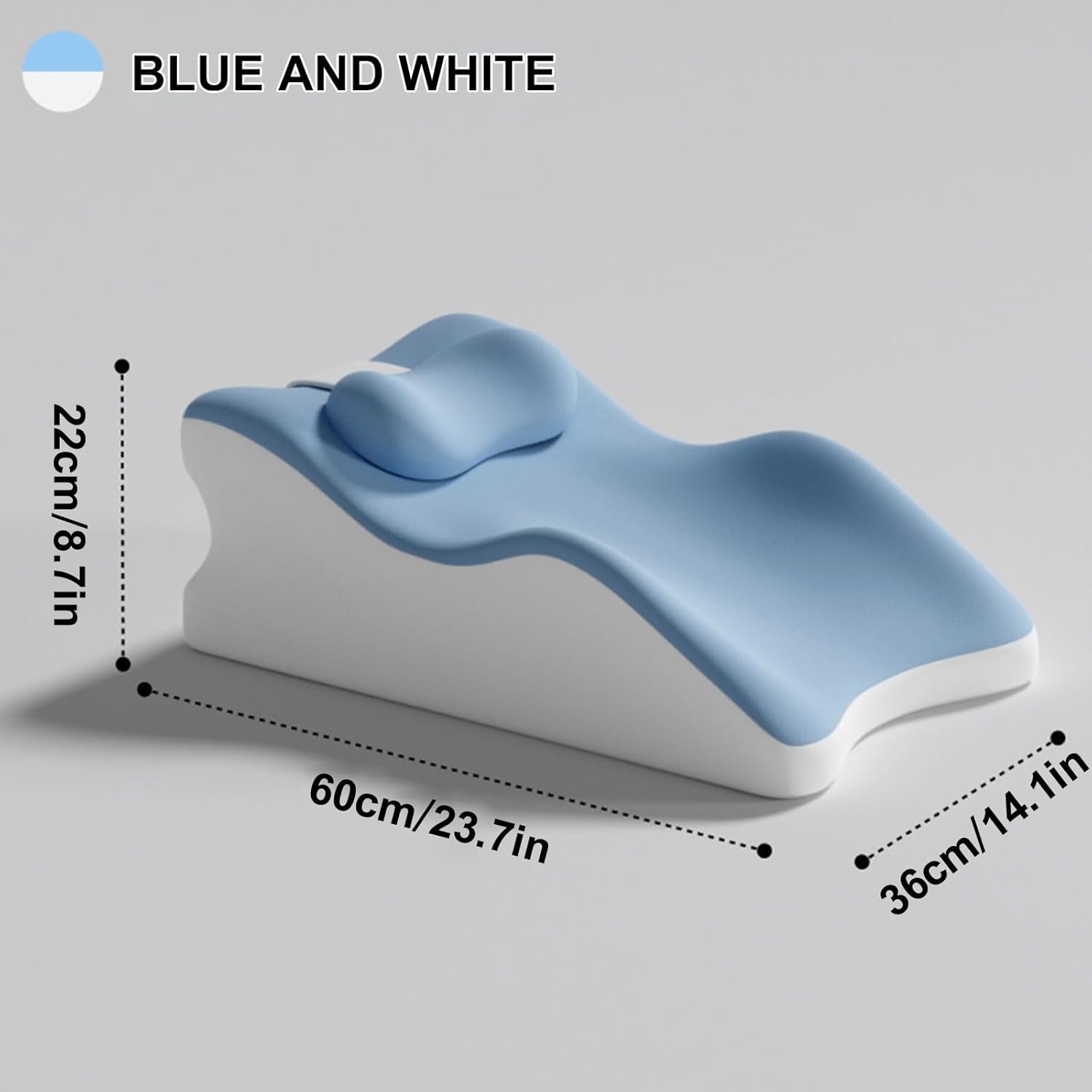 - 【PRESSURE RELIEF FOR ALL SLEEP POSITIONS】Contoured curve supports side, back, and stomach sleepers. Cradles head while reducing ear/jaw pressure and morning stiffness.