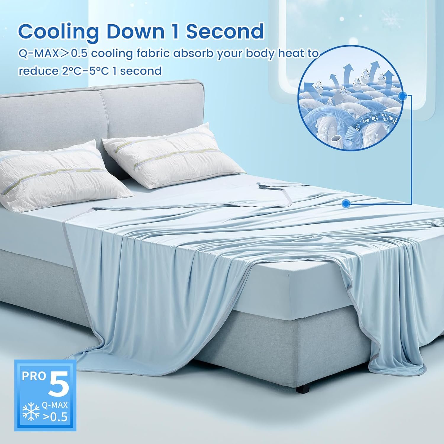 • Cooling Blanket for Hot Sleepers: cooling blanket is made of the latest Q-Max>0.5, the advanced cooling technology can not only absorb your body heat to reduce 2°C-5°C of your skin temperature in 1 second, but helping to dissipate heat and moisture, ensuring that you stay cool and dry throughout the night. Giving a comfortable and refreshing night’s sleep for hot sleeper and night sweats in hot summer.