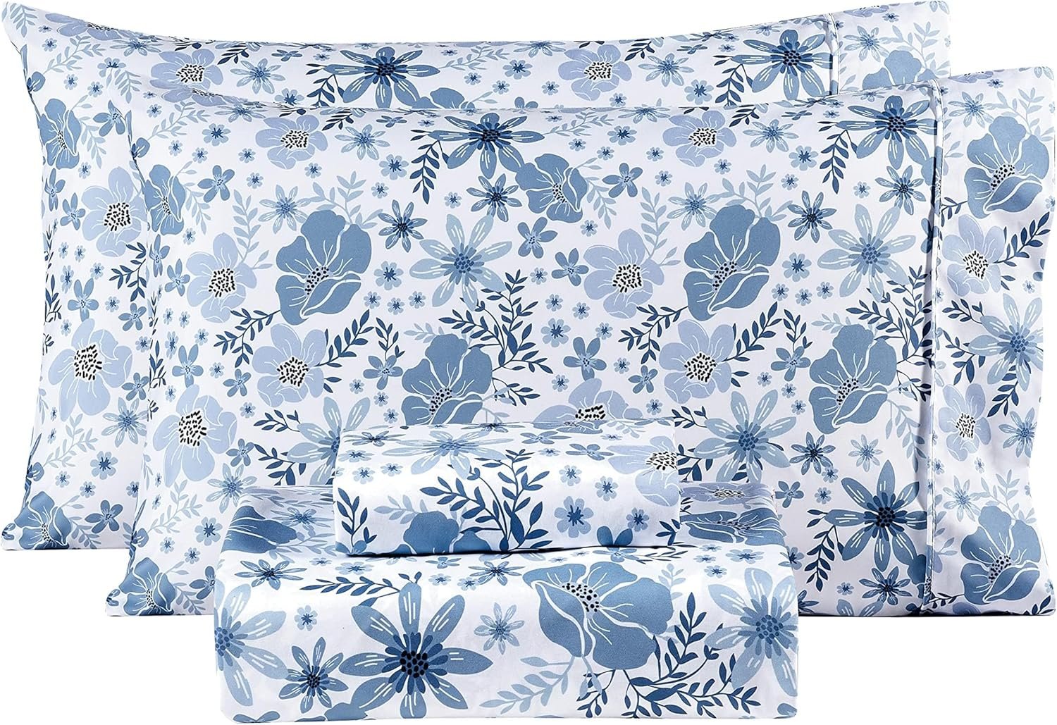 - Elegant Floral Design: Our full Size Floral Sheet Sets features elegant light blue and dark blue floral designs, with a white background that makes the overall look elegant and beautiful