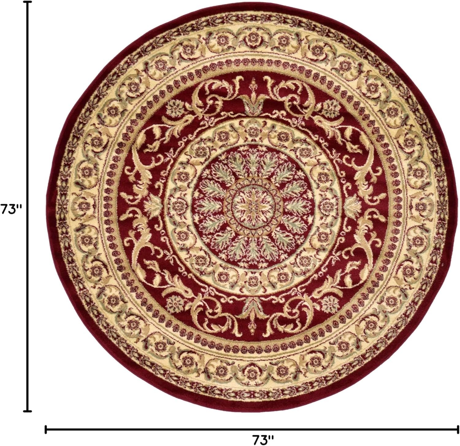 Traditional Classic Medallion Floral Motif Area Rug (6′ 0 x 6′ 0 Round, Burgundy/ Ivory)